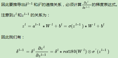 在DNN中,我们知道δl−1和δl的递推关系为: