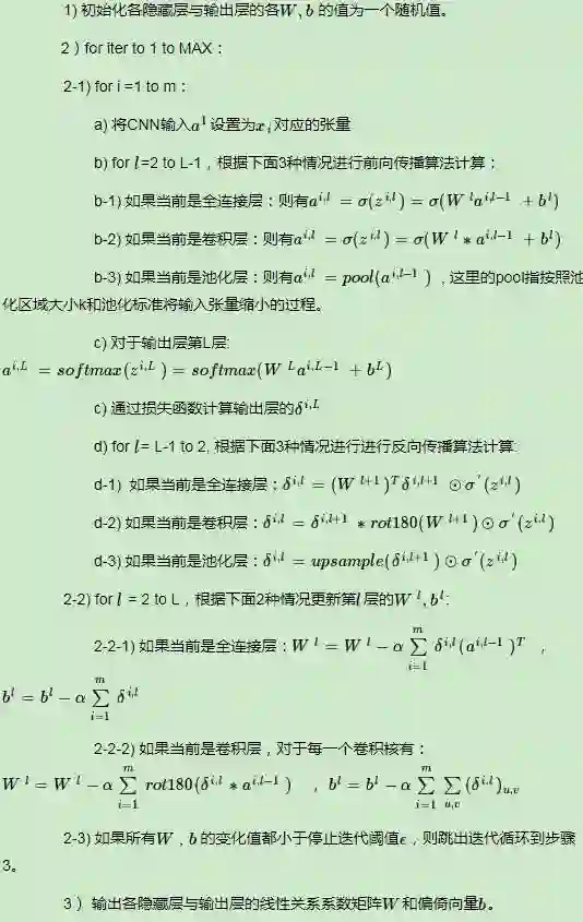 现在总结下CNN的反向传播算法,以最基本的批量梯度下降法为例来描述反向传播算法。