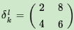 假设池化区域大小是2x2。δl的第k个子矩阵为: