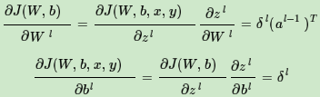有了δl的表达式,从而求出W,b的梯度表达式: