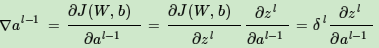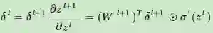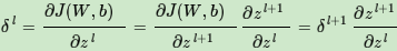 利用数学归纳法,用δl+1的值一步步的向前求出第l层的δl,表达式为: