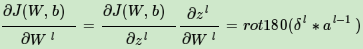 4)对于卷积层,由于W使用的运算是卷积,那么从δl推导出该层的所有卷积核的W,b的方式也不同。