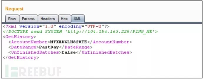 经过多次测试后,我确认没有直接回显通道,但可以强制服务器在响应中显示结果。所以我使用了一种技术,我们使用“DOCTYPE”中的外部实体注入XML payload而不是一般实体,带有SYSTEM关键字的DOCTYPE声明会导致XML解析器从URI读取数据并允许它继续进入文档: