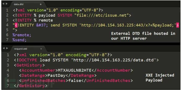 可以通过仅引用托管的DTD资源来执行此攻击。只要服务器处理XML请求,该请求甚至不必包含任何XML主体。