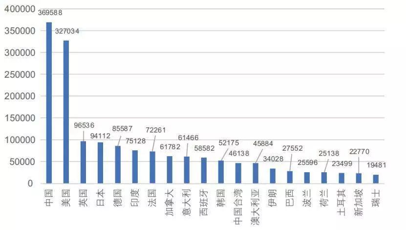 中国已经成为全球人工智能专利授权最多的国家,数量略微领先于美国和日本,而中美日三国占全球总体专利公开数量的74%。