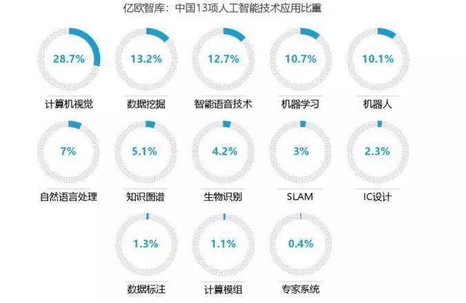 图10.中国人工智能技术应用比例(亿欧智库,2018)
