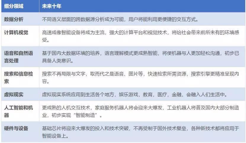 2017年12月,《促进新一代人工智能产业发展三年行动计划(2018~2020年)》的发布,它作为对7月发布的《新一代人工智能发展规划》的补充,详细规划了人工智能在未来三年的重点发展方向和目标,每个方向的目标都做了非常细致的量化。