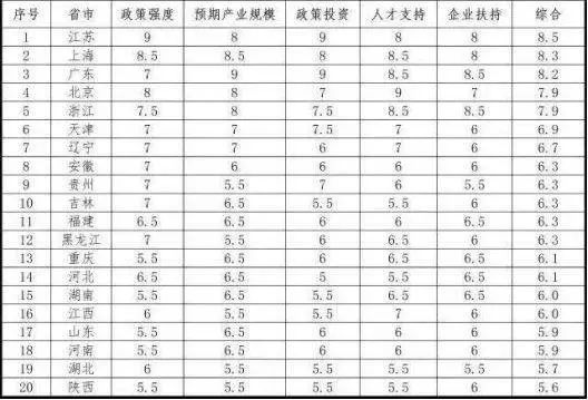 从政策角度看:江苏、上海、广东、北京、浙江是未来人工智能发展与投资的热点区域。