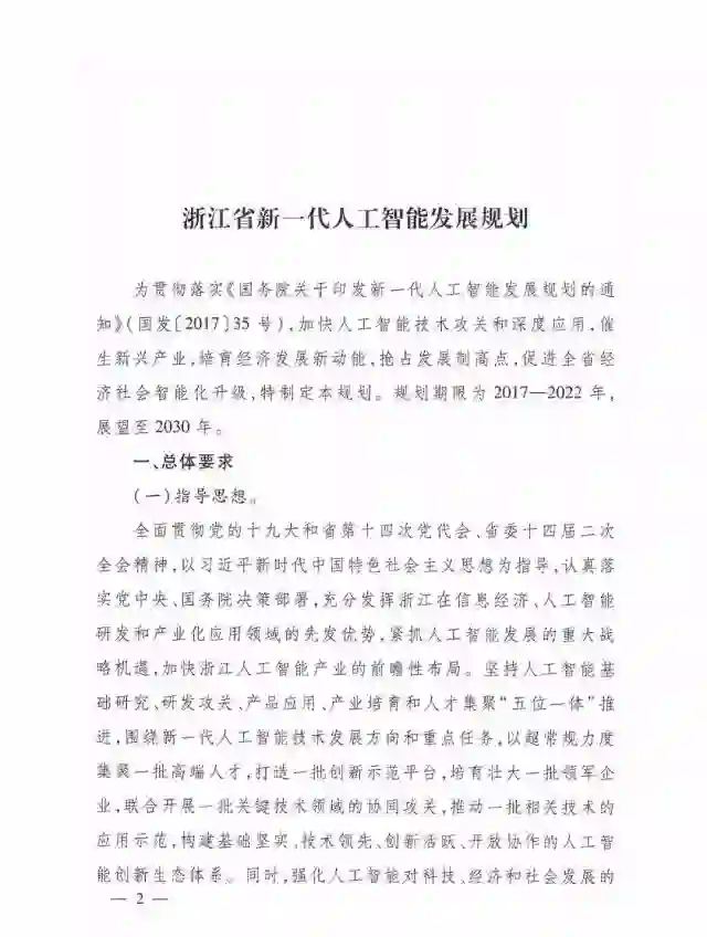 《浙江省新一代人工智能发展规划》