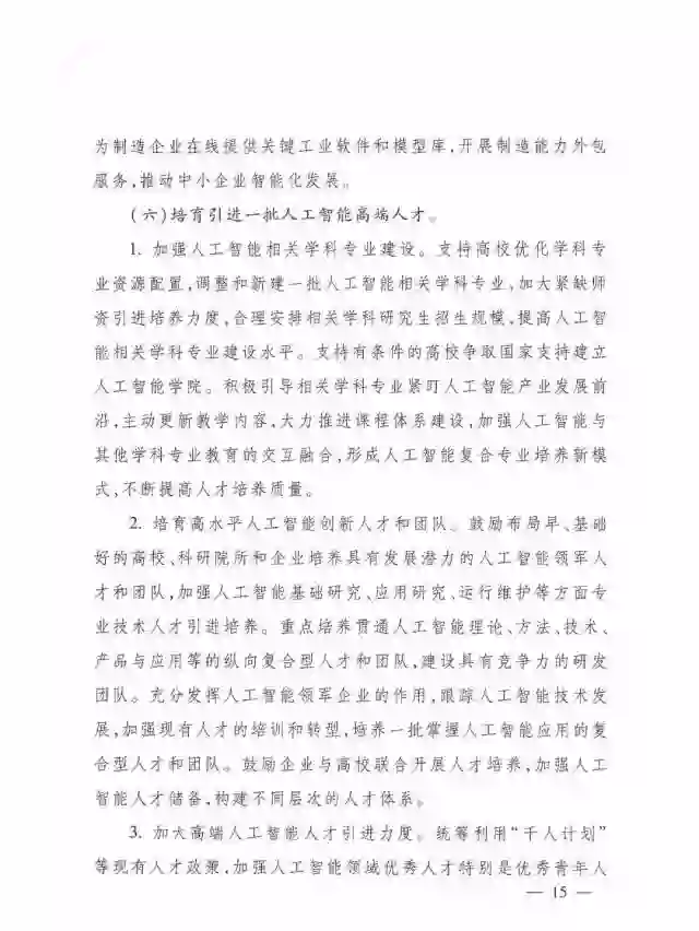 (六)培育引进一批人工智能高端人才。