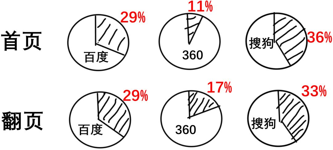 量化成数据的话,三者首页和翻页的展示结果包含医疗广告的比例是: