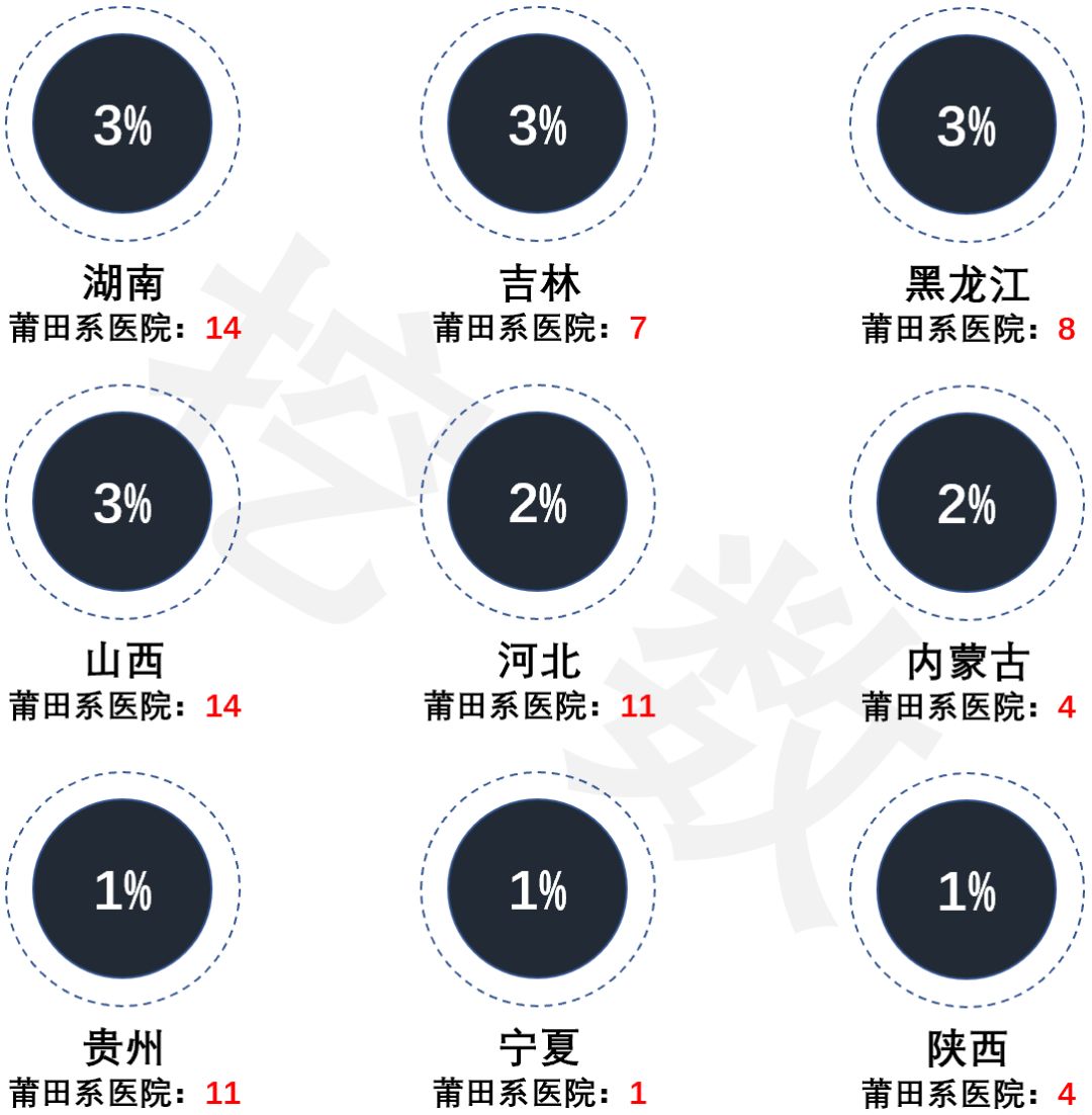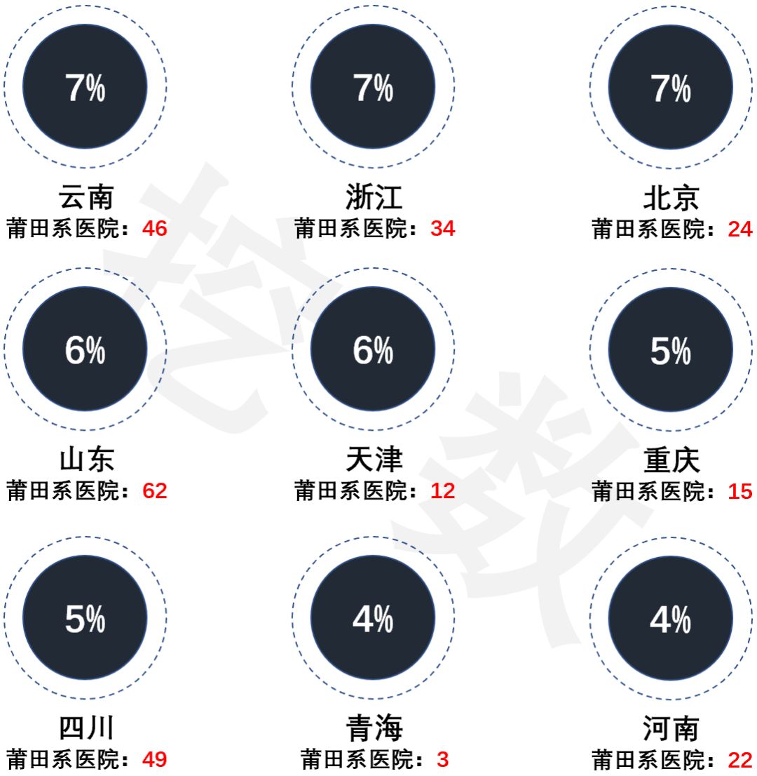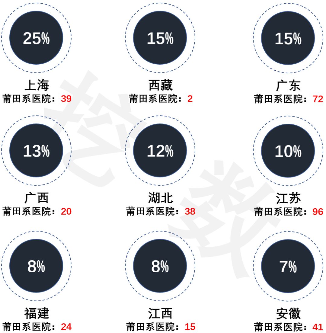 可以看到在莆田系医院占比最高的上海,4家民营医院就有1家莆田系。