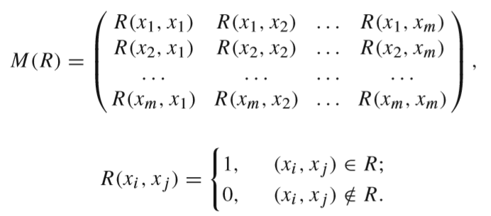 首先,作者使用矩阵M对于二元关系R进行了如下描述: