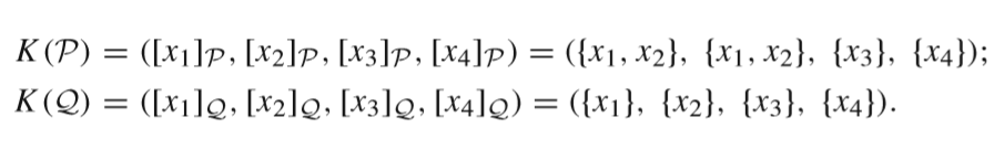 当R满足上述三种情况时,被称为“equivalence relation on U”,R∗(U)则代表所有equivalence relation on U”的集合的族(我理解为子集的集合)