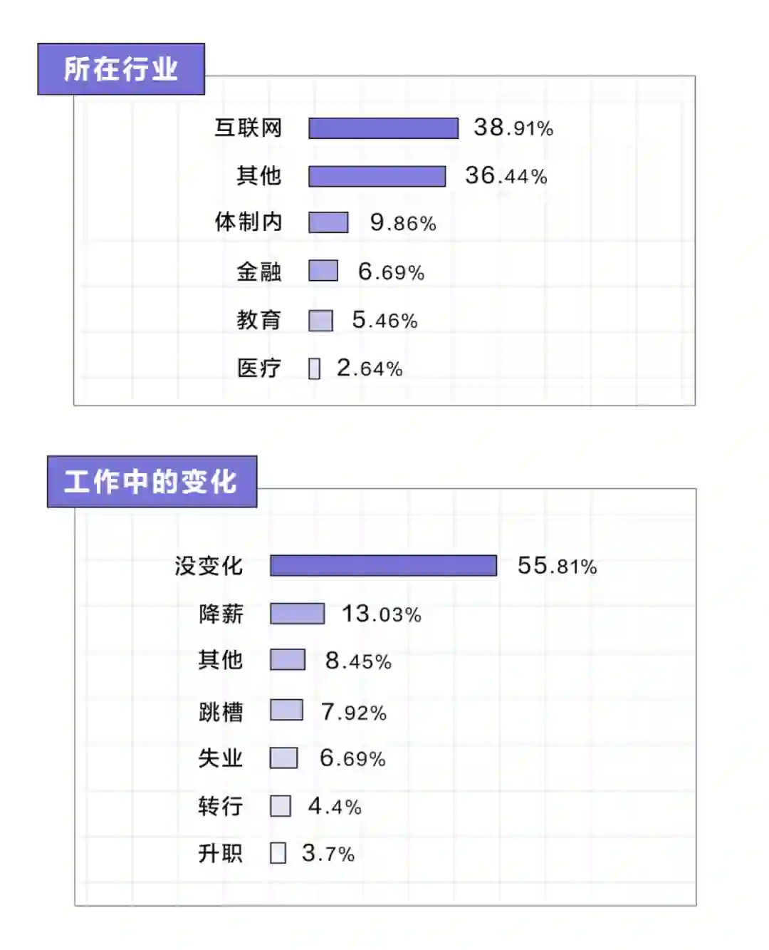 疫情对普通人最大的影响首先体现在工作和收入上,好消息是有55.81%的人,即使受到疫情冲击工作仍然稳定,还有3.7%的人升了职。