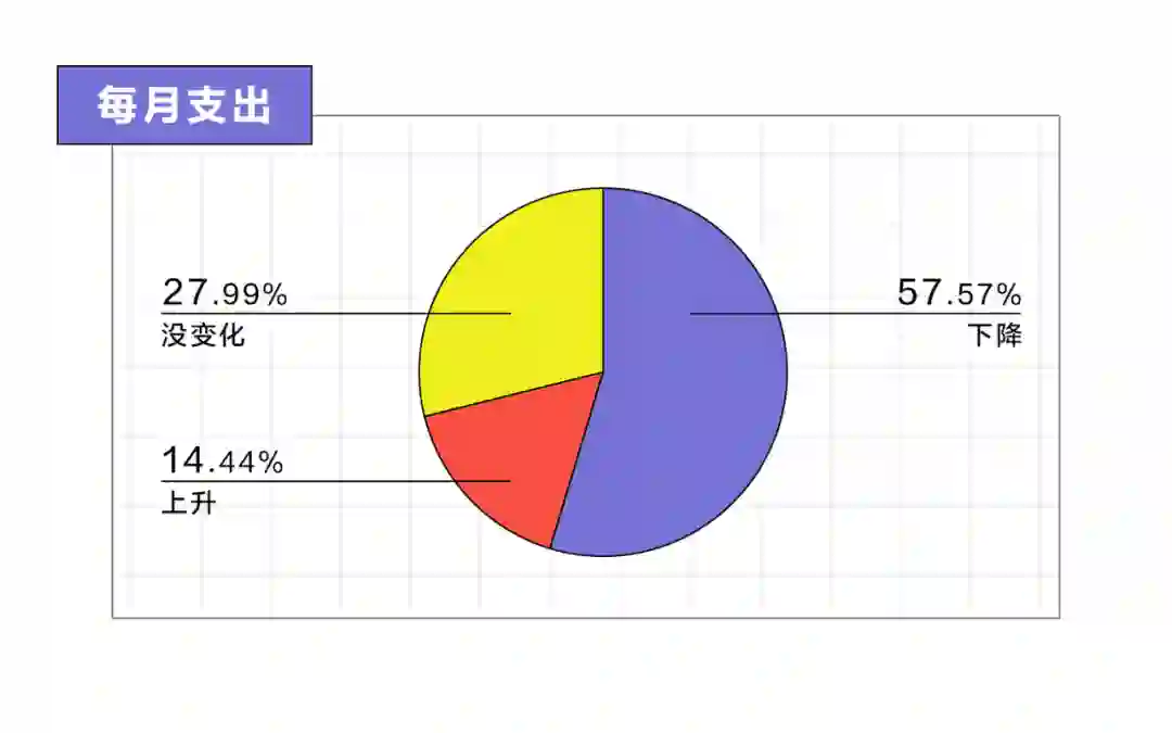 一半以上的调查对象都表示自己的每月支出跟疫情前相比下降了,甚至包括3位年薪百万的朋友,收入水平也并没有带来更多消费的底气,收入水平20-50万之间的朋友,危机感似乎最强。