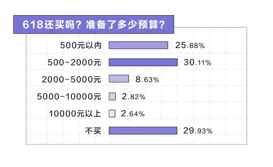 但消费预算明显变少了,25.8%的人预算在500元以内,30%的人预算在500-2000以内。