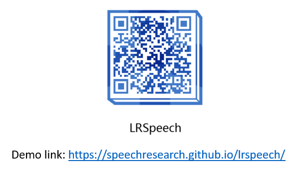 主干模型我们用的是 Transformer 模型,使用了6层的解码器和编码器,模型的 hidden size 是384,FFNsize 是1536,FFN kernel size 是9,attention heads是4,在4卡 P40 上进行训练。对于 TTS 的评估使用的是 IR 和 MOS,对于 ASR 系统的评估使用的是 WER(word error rate,词错误率)和 CER(character error rate,字符错误率)。大家可以扫描访问以下网页来听一听声音。