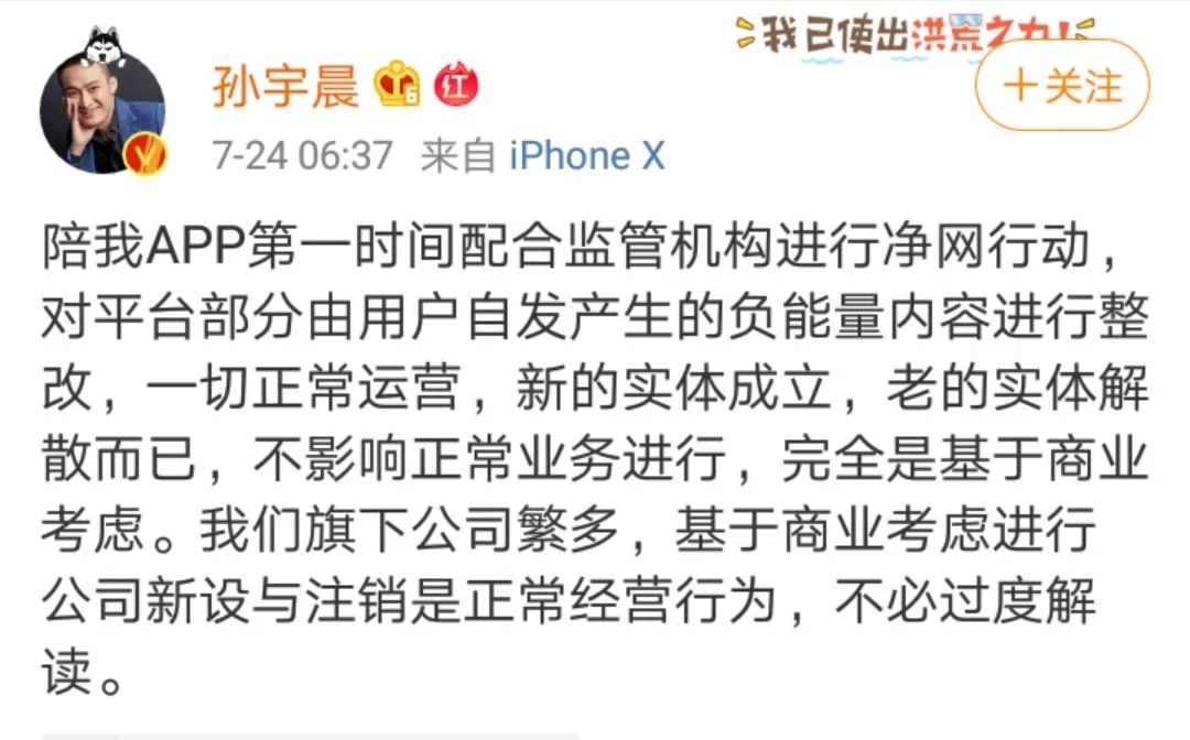 早年公司内部员工透露,孙宇晨的大部分精力都在经营媒体与个人品牌上,公司开发与产品业务进展缓慢。之后,他收购了一家视频直播公司“陪我”。新华社曾报道,“陪我APP”涉嫌色情交易,曾在去年网络音频整治中被下架。