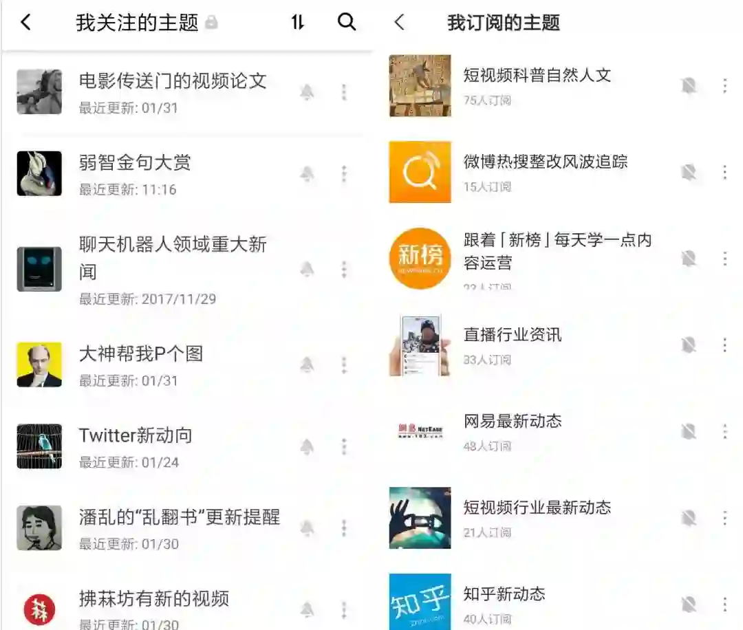 这也是两者最大的区别,主要体现在第一个Tab,也就是资讯浏览上。再往下拆分,用户订阅的主题推送,都以短消息形式呈现,差别不大。关键在于热门内容的呈现,立知更像门户网站的新闻聚合,即刻则以类微博的feed流为主。