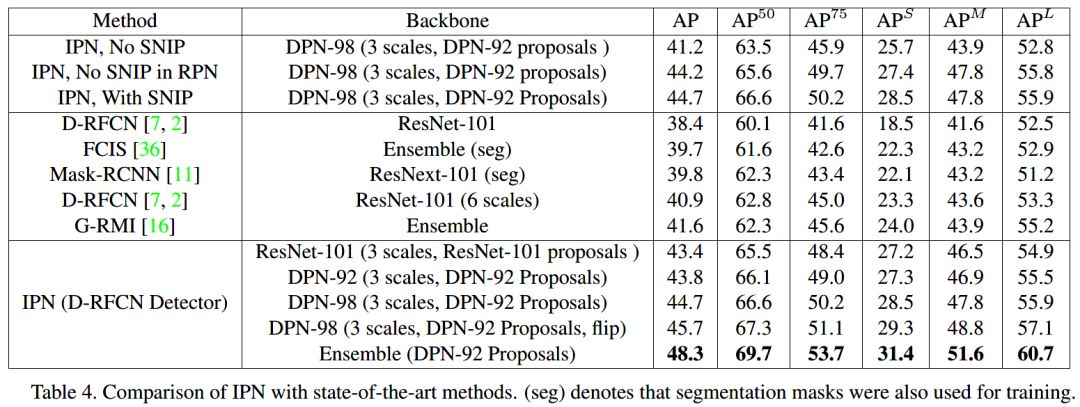 Baseline是使用单尺度训练的RFCN MS Test是使用多尺度图像进行测试 MS Train/Test是使用多尺度训练测试,即MST