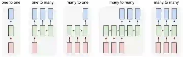 除了最左侧的one to one是feedforward 能做的,右侧都是Recurrent所扩展的