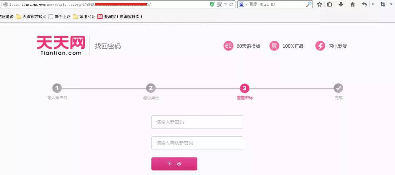 然后直接用,拿到的字符串,访问重置密码的页面。假如,上一步没有做的话,到这一步会直接 302 跳转。