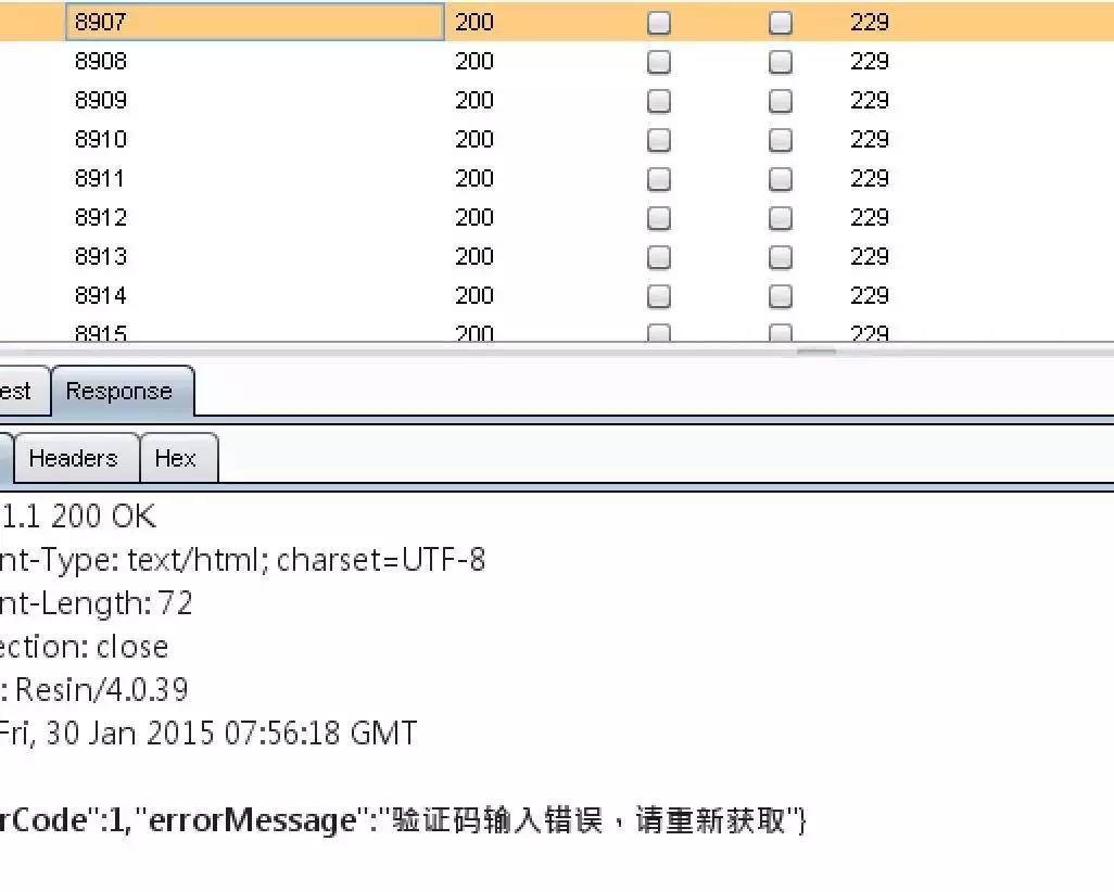 但是当我们输入对验证码,会被提示验证码错误,请重新获取。于是,思绪一转,可以在返回值,改成: