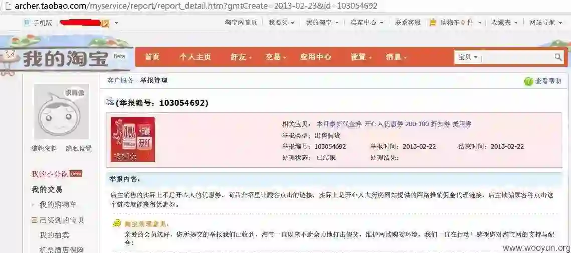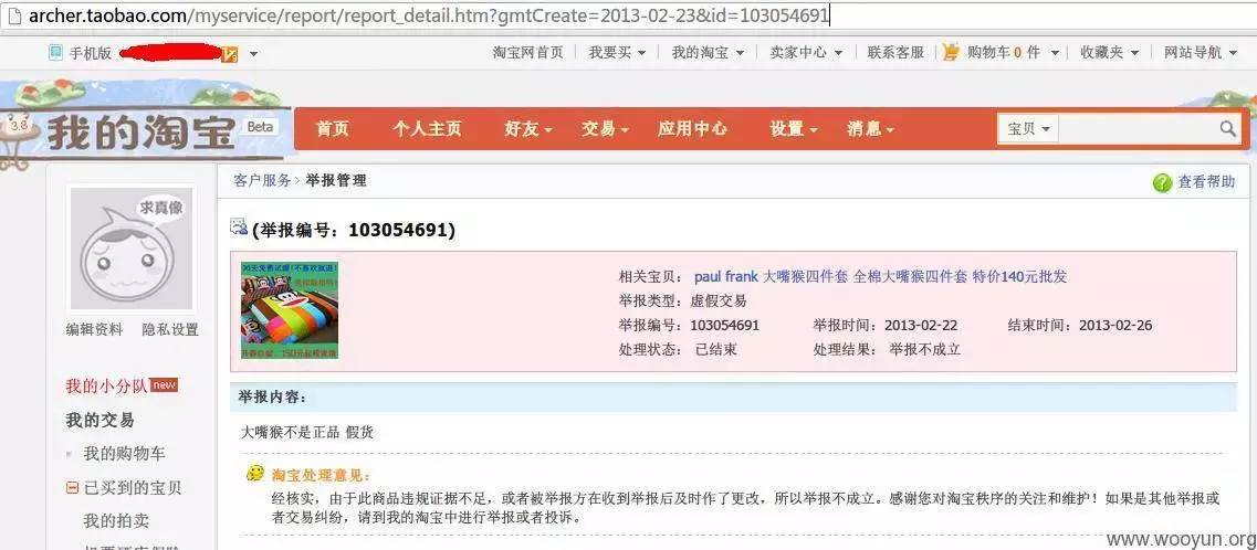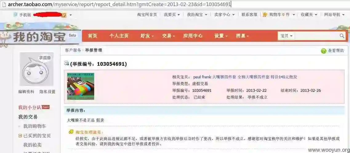 http://archer.taobao.com/myservice/report/report_detail.htm?gmtCreate=2013-02-23&id=[任意举报编号]
