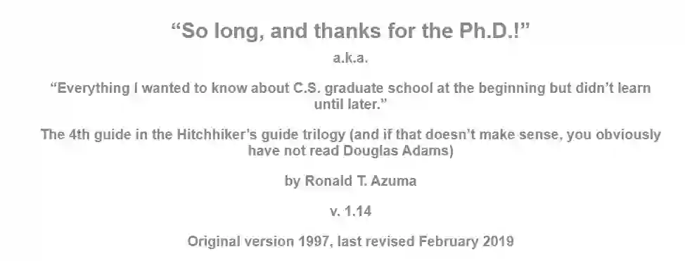 Ronald T. Azuma博士于1995年5月在北卡罗莱纳大学取得计算机科学的博士学位,后来他在1997年发表了一篇名为「这么久了,感谢博士学位」的文章,又名「刚开始我想知道有关CS的一切,但直到毕业后我都没搞懂」。
