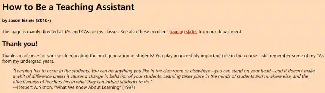 文章链接:https://www.cs.jhu.edu/~jason/advice/how-to-ta.html