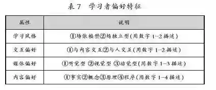 学习者偏好特征模型主要涵盖作为核心因素的学习风格以及由学习风格决定的交互偏好、媒体偏好和内容偏好。具体如表7所示。