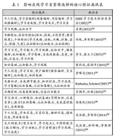 (一)影响教育资源选择的学习者特征属性提取