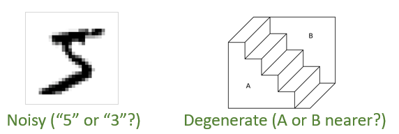 图3:当生成机制 p(x│s,v) 有噪(左)或退化(右)时,推断结果具有任意性,因而推断不变性不再可靠