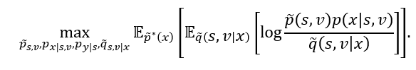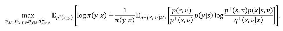 其中 π(y│x)≔E_(q^⊥ (s,v│x) ) [p(s,v)/(p^⊥ (s,v) ) p(y│s)]。式子中的期望可在对 q(s,v│x) 进行重参化(reparameterization)后用蒙特卡罗(Monte Carlo)方法估计。预测由 p^⊥ (y│x)=E_(p^⊥ (s,v|x) ) [p(y│s)]≈E_(q^⊥ (s,v|x) ) [p(y│s)]给出。