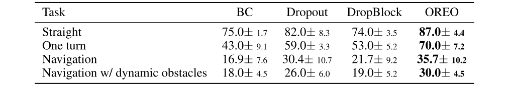 表4:CARLA 驾驶模拟环境中各任务下各模仿学习算法的成功率