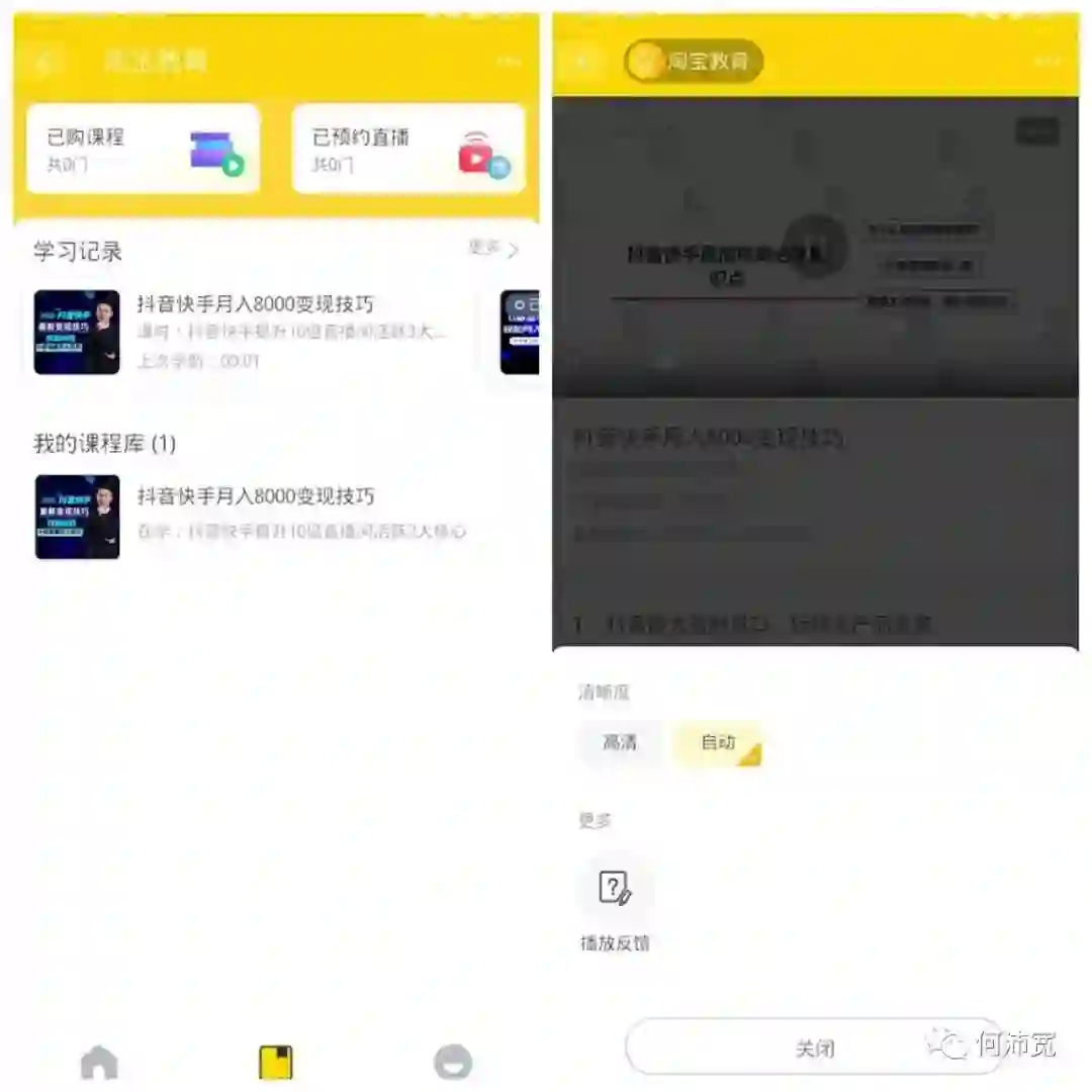 现在在淘宝手机端,已经有提供用户长时间停留的场景:用户可以在app直接观看视频课,而且使用体验与目前的主流教育app差异不大。
