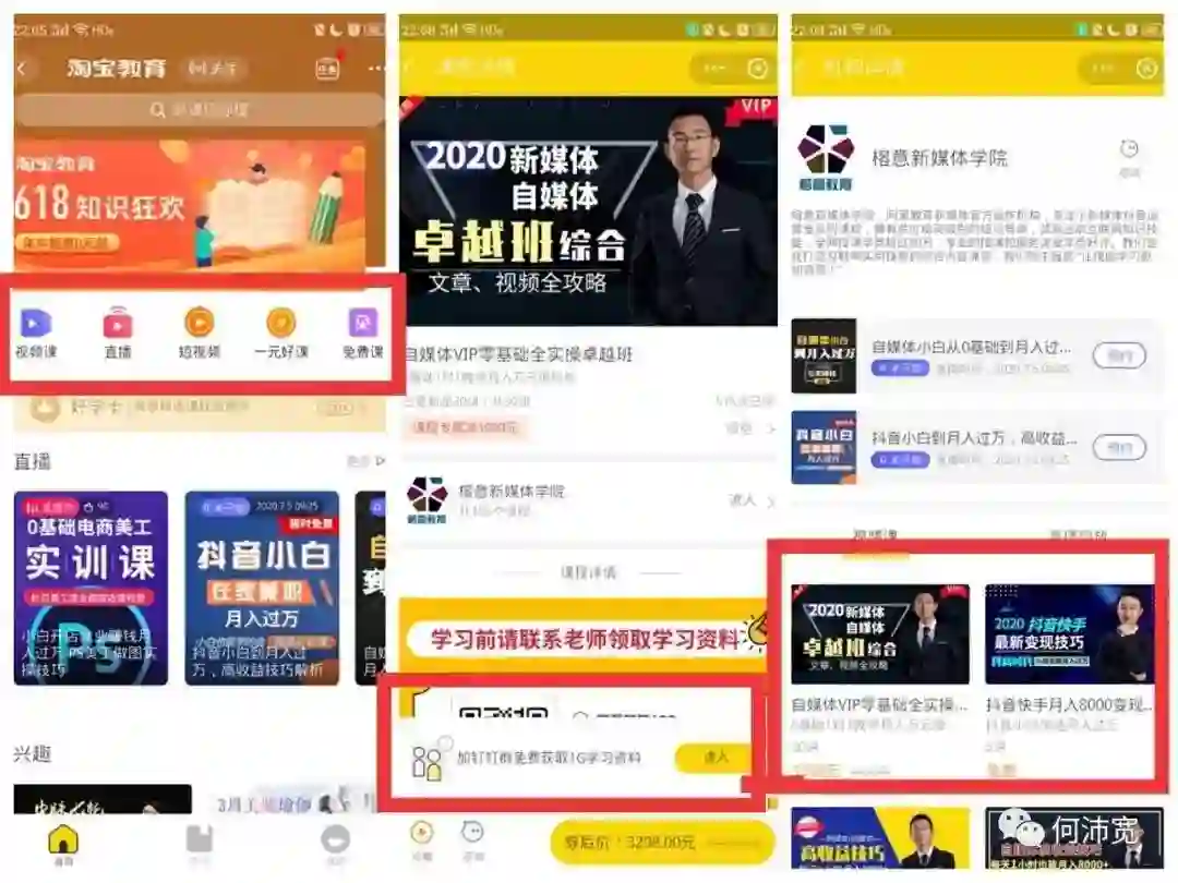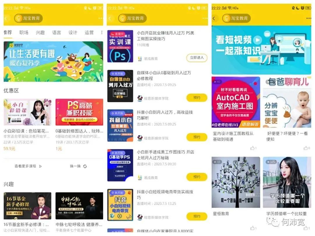 手机淘宝教育:视频课-直播课-短视频三种形态,跨品类多门课程已上架