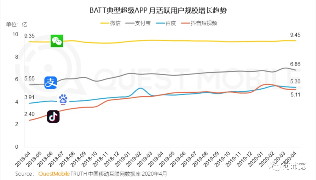 各大巨头公司都在争取用户,抖音持续增长、微信长居第一,淘宝教育在淘宝、支付宝有“助攻之势”