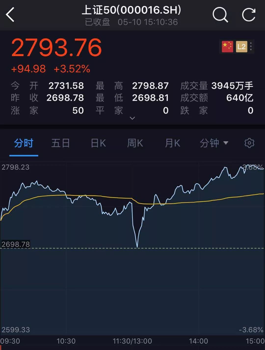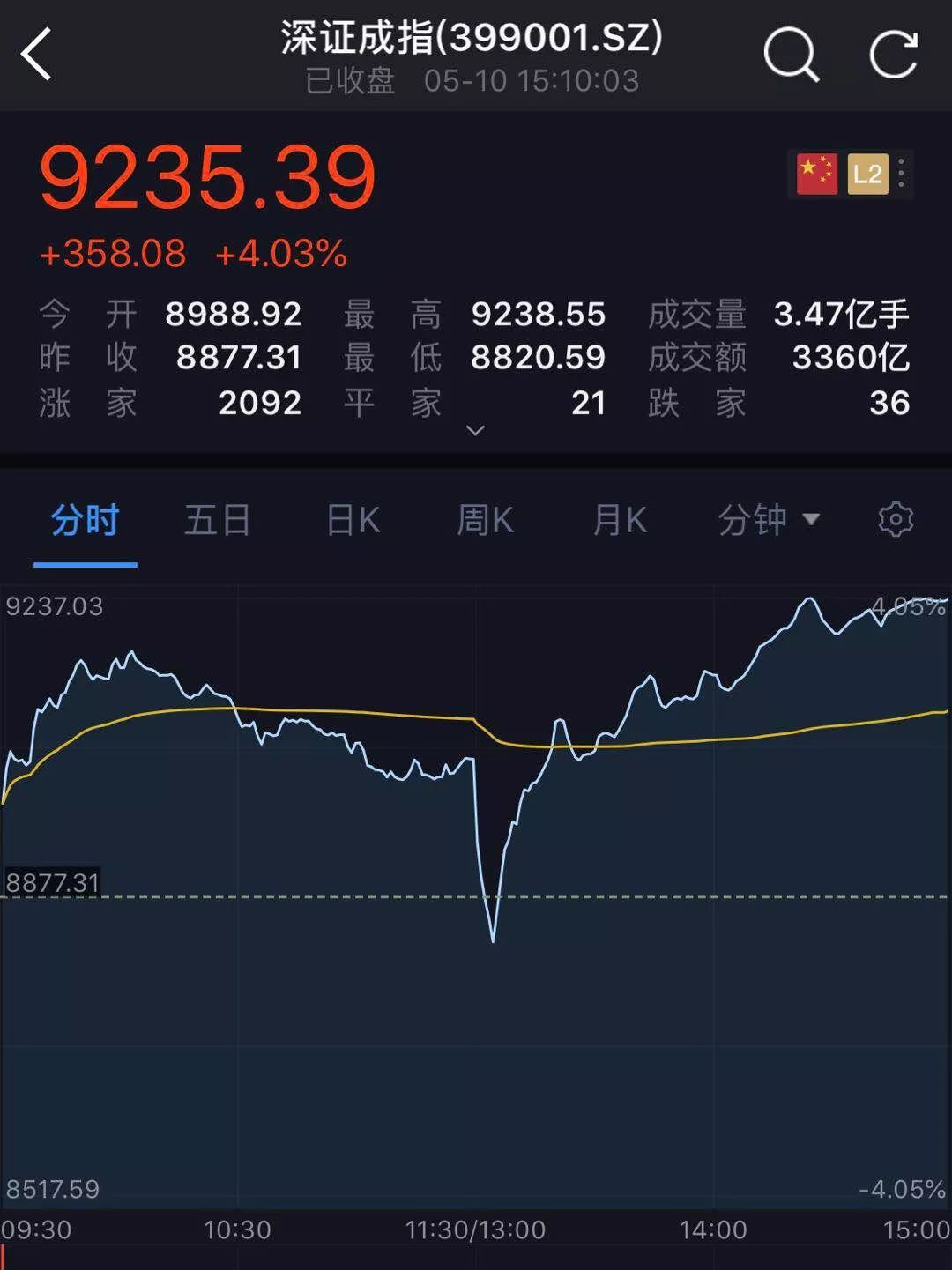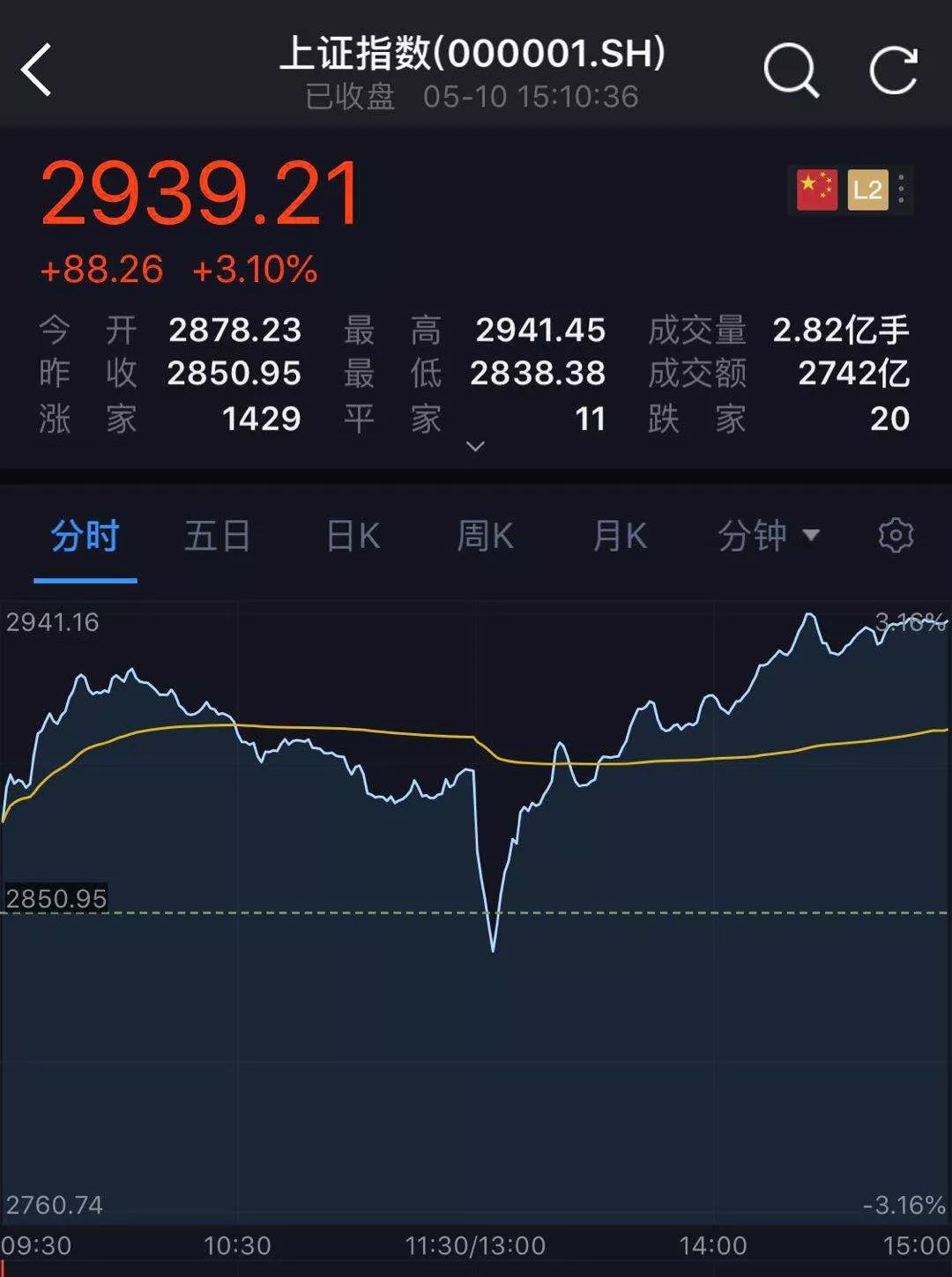 股市竟然跟打了鸡血一样,不要怂就是干,愿谈则谈,要打便打!竟然全部V回去,还创出了日内新高。