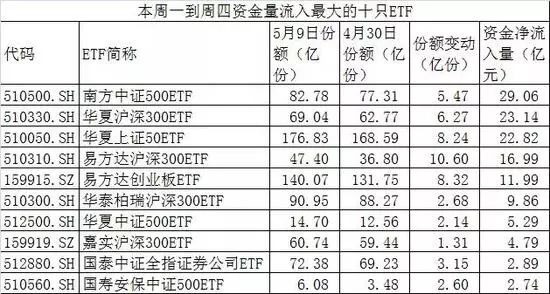 而这几天,市场波动中,大资金风向标之一的ETF(交易型开放式指数基金)获得近140亿元资金流入。本周4个交易日,5月6日-5月9日ETF分别有53亿元、32亿元、22亿元、30亿元,合计净流入137亿元。