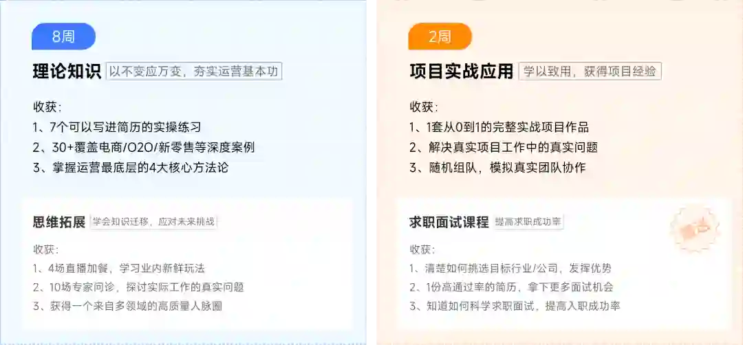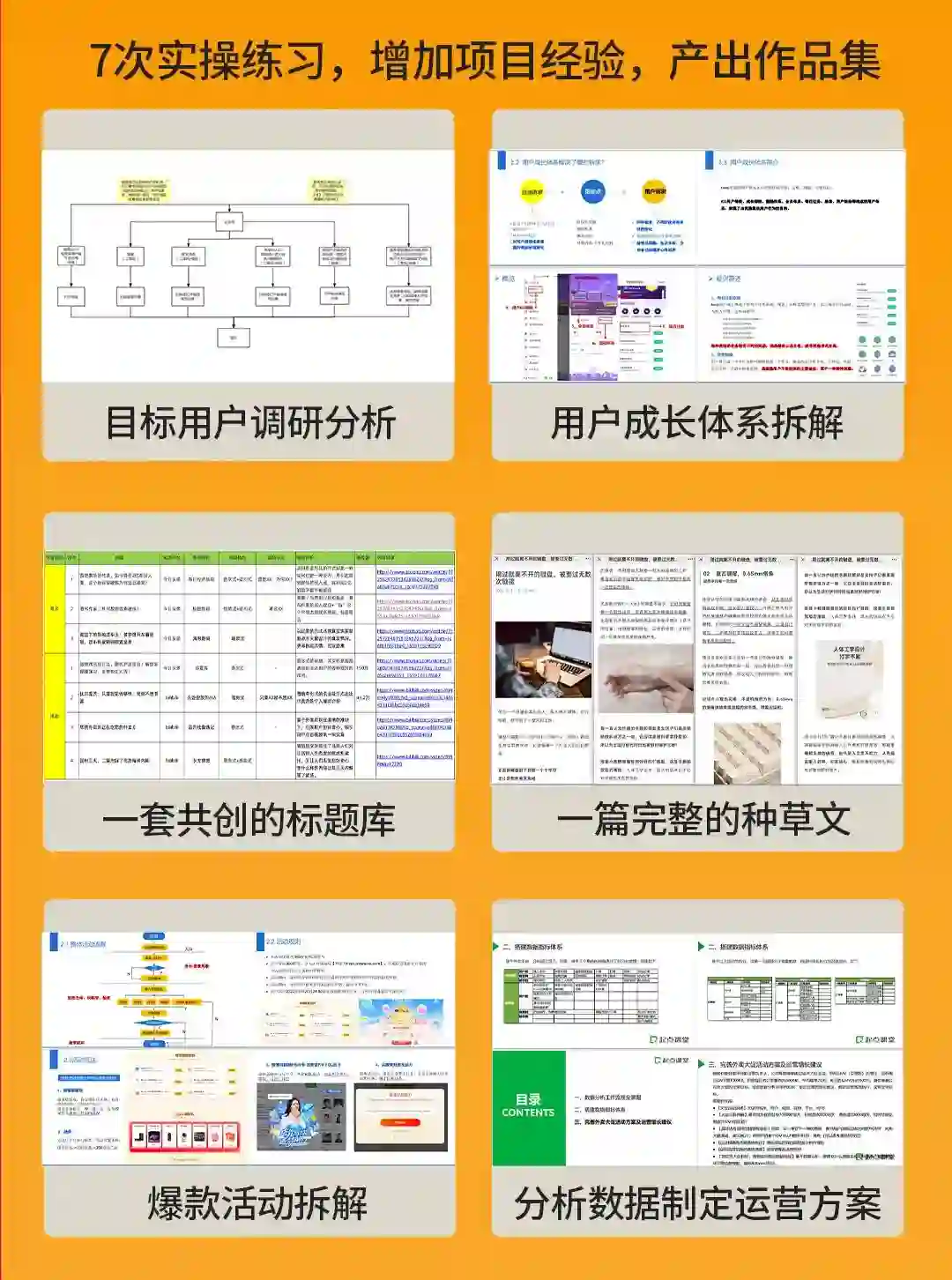 通过从0到1完成具体的运营工作任务、输出作品集、积累项目经验,让知识不再是知识,而变成可以落地实践的方法论!