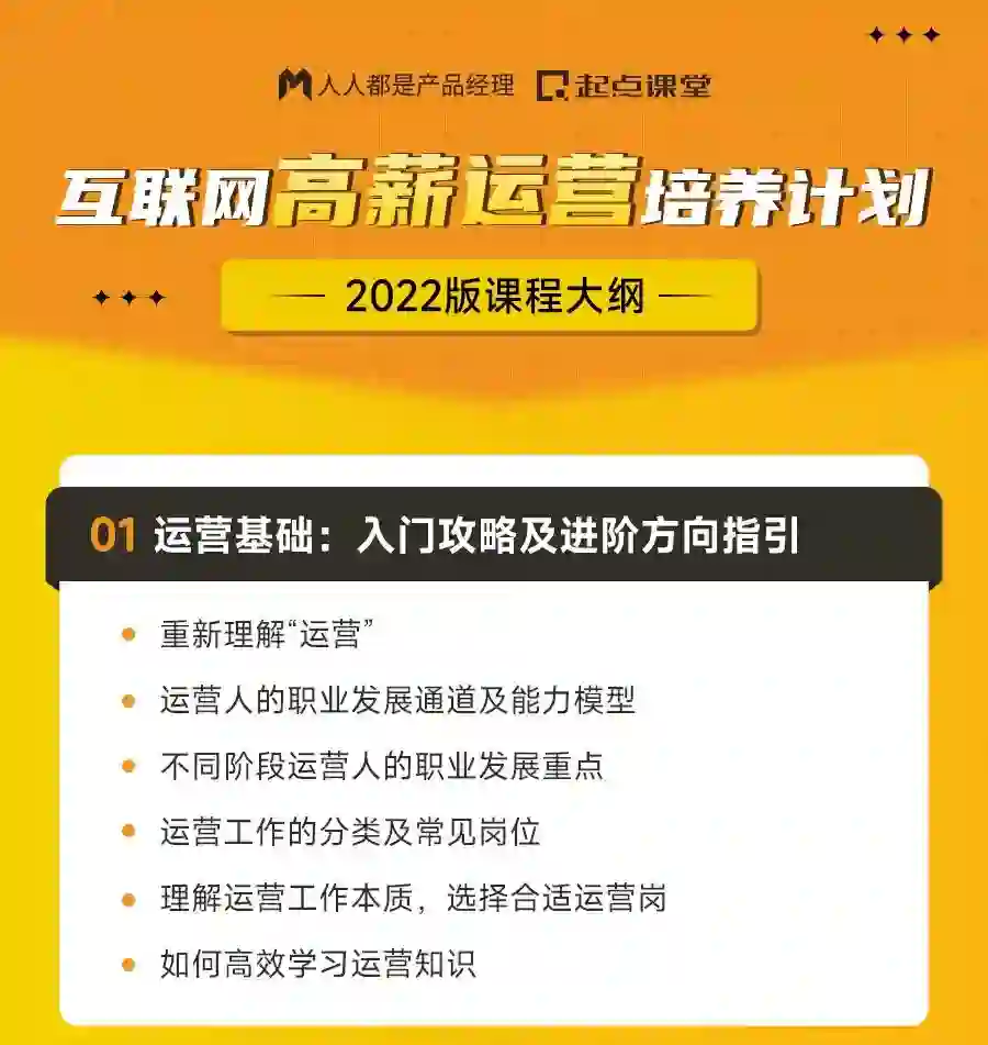 课程是由起点课堂出品,经过人人都是产品经理社区12年沉淀,课研团队和大厂导师不断打磨升级,专门针对运营人系统能力提升。
