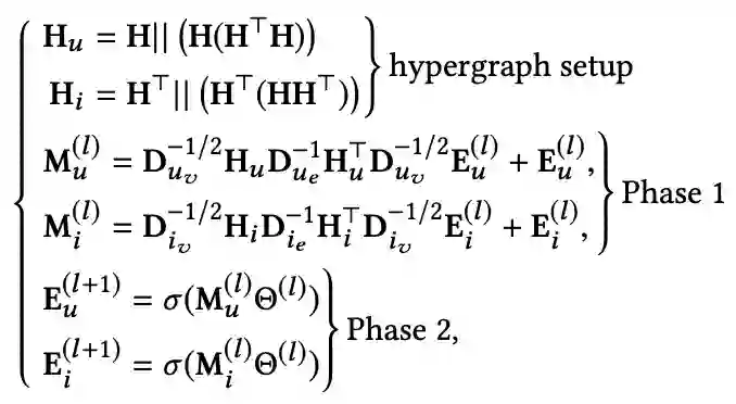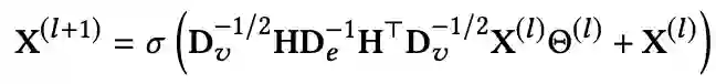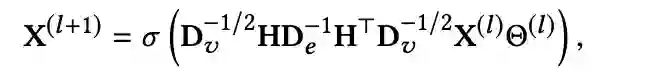 的输入。整个式子可以理解为两阶段消息传递机制,传播路径为vertex-hyperedge-vertex。