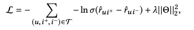 采用 pairwise Bayesian Personalized Ranking (BPR)loss来优化模型,如下所示