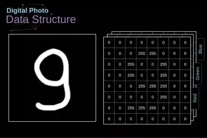 让我们先花一些时间来解释数字图像是如何存储的。你们大多数人可能知道它们实际上是由很多数字组成的矩阵。每一个这样的数字对应一个像素的亮度。在RGB模型中,彩色图像实际上是由三个对应于红、绿、蓝三种颜色通道的矩阵组成的。