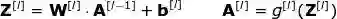 第二步是将非线性激活函数的应用到获得的中间值上(我们的激活函数表示为g)。对矩阵方程感兴趣的读者可以在下面找到对应的数学公式。顺便说一下,在下图中你可以看到一个简单的可视化,描述了方程中使用的张量的维数。
