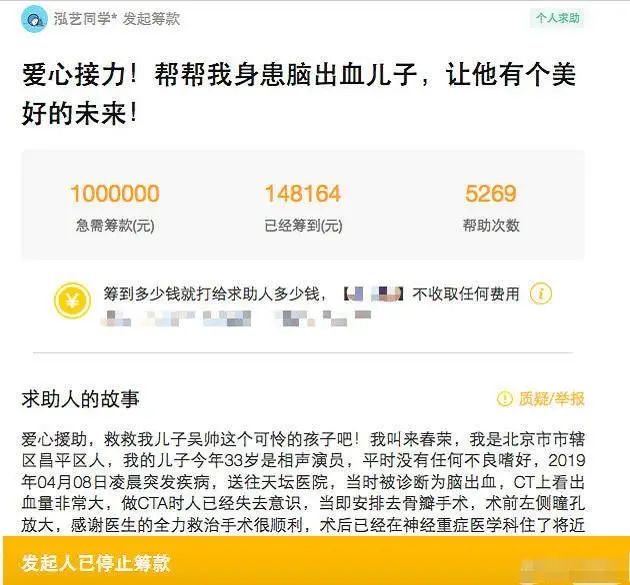 根据众多媒体的报道,这里面的诈捐案例比想象中多。比较著名的就有德云社演员吴鹤臣,在北京拥有两套房一辆车的吴鹤臣家,却在筹款页面上被认证为「贫困户」,发起了 100 万元的筹款。
