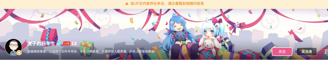 而曾将虎子推上首页的 B 站,也在虎子的主页上加了一行标注:「该 UP 主内容存在争议,请注意甄别视频内信息。」