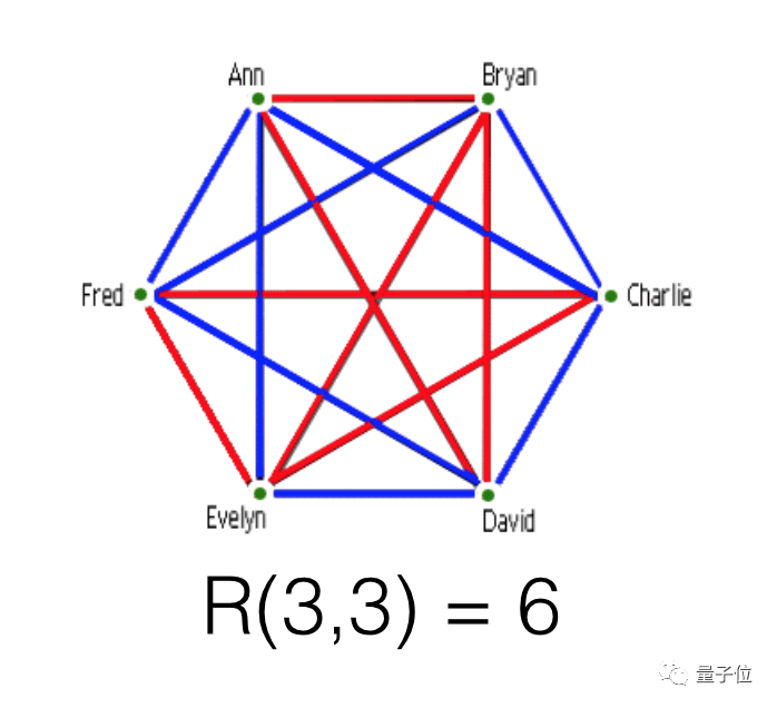 也就是说,R(3,3)=6,这里的6就是拉姆齐数。
